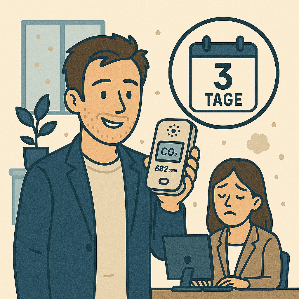 Kohlendioxid (CO₂) ist ein zentraler Indikator für die Luftqualität und Frischluftzufuhr. Wird ein CO₂-Wert von über 1000 ppm überschritten, treten häufig Symptome wie Müdigkeit, Kopfschmerzen und verminderte Konzentration auf – ein klarer Hinweis auf mangelnde Lüftung.